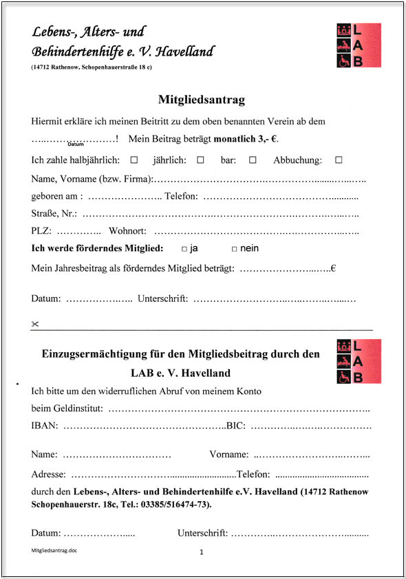 Schopenhauer Str. 18c 14712 Rathenow Tel.: 03385-516473 + 74 Fax: 03385-516475 E-Mail: info@lab-ev.de